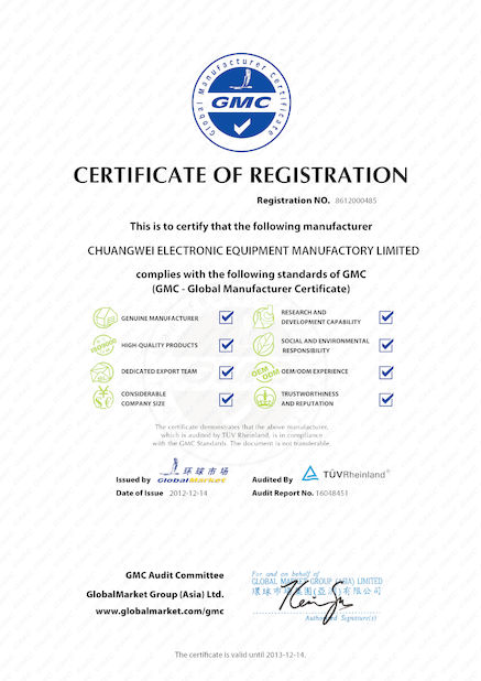 Standard:GMC Zahl:8612000485 Heft Datum:2012-12-24 Scope / Range:Electronic Equipment Ausgestellt von:Global Market |