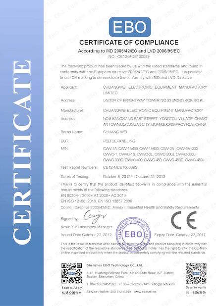 Standard:CE Zahl:CE12-MDE100089 Heft Datum:2012-10-22 Scope / Range:Electronic Equipment Ausgestellt von:Shenzhen EBO Technology Co; Ltd |