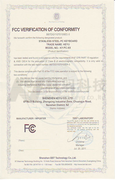 Standard:FCC Zahl:BSTDG11070105EC-3 Heft Datum:2011-07-25 Ausgestellt von:SHENZHEN BST Technology Co.,ltd |