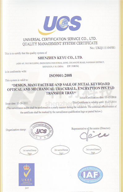 Standard:ISO Qualilty management system certificate Zahl:UKQ1111045R1 Heft Datum:2011-11-28 Verfallsdatum:2014-11-27 Ausgestellt von:universal certification service co.,ltd |
